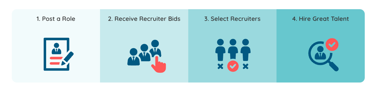 - End-to-end recruitment matching - Post a role, receive recruiter bids, select a recruiter and hire your talent