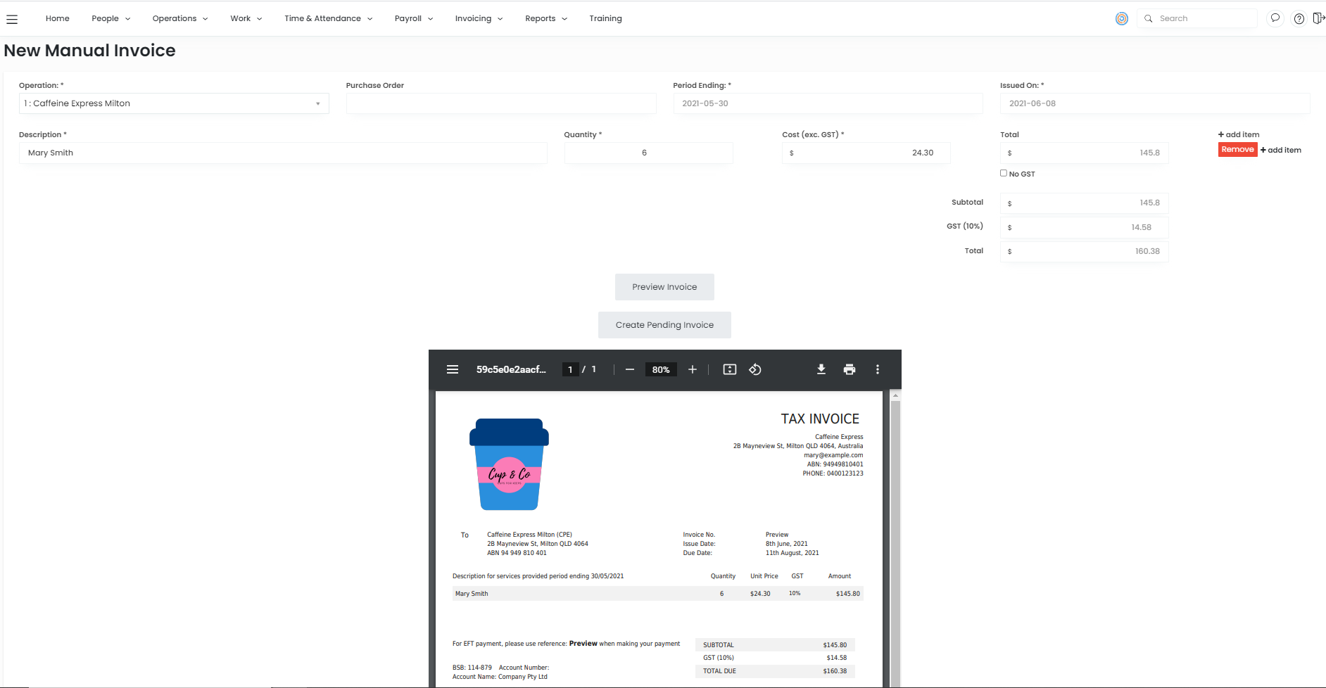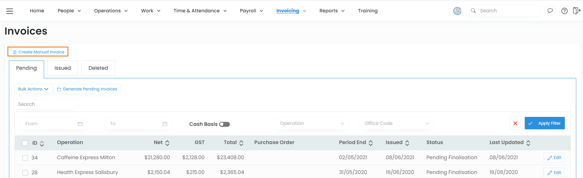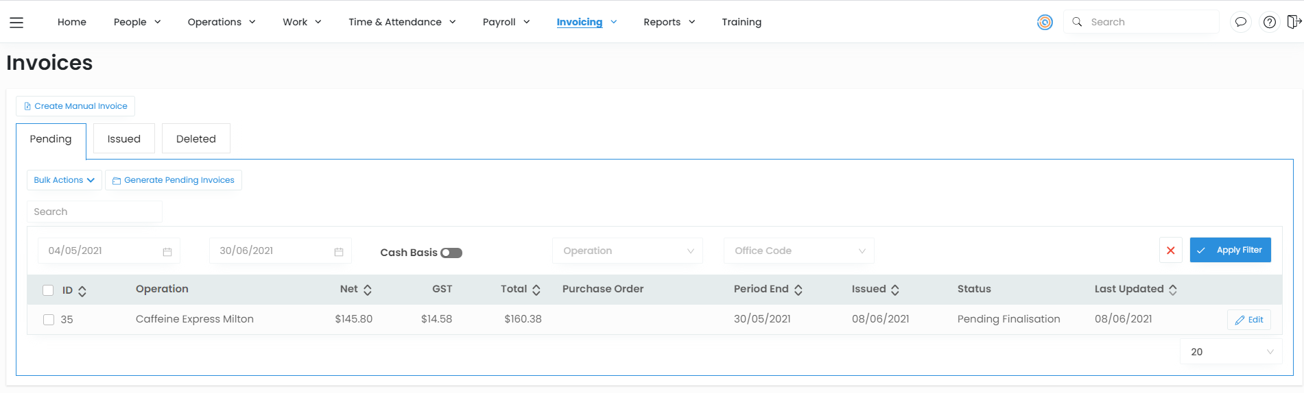This invoice will now appear in Pending invoices.