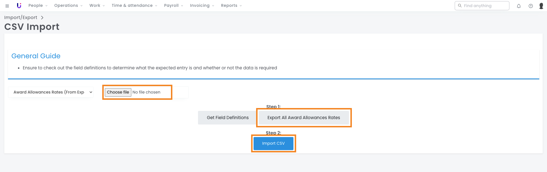 Please note: Using this CSV to update your rates will only update them in your Award, any overrides in your Operations will remain unchanged.