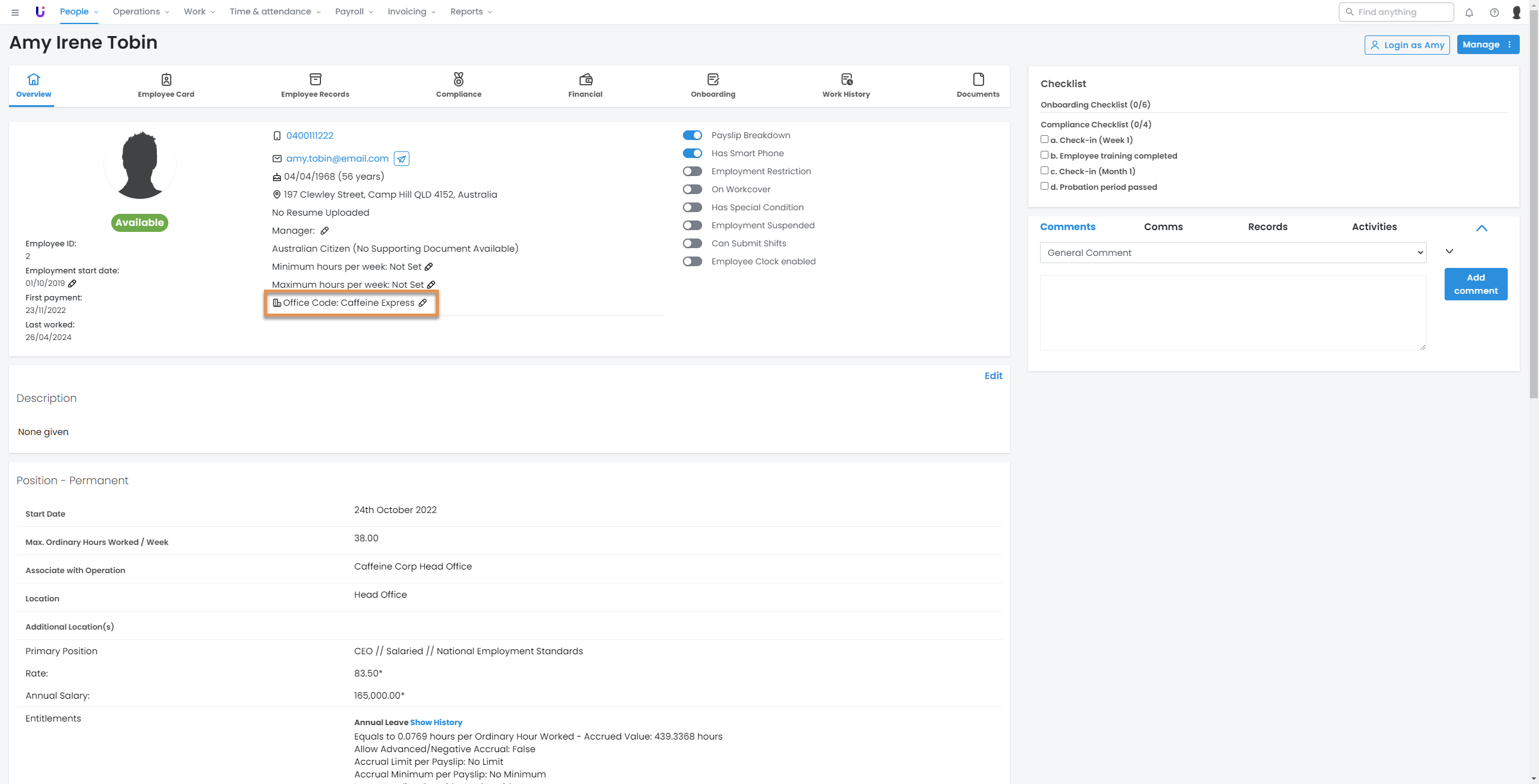 The new office code can now be applied to employees and operations as required. Please refer to the appropriate accordion below for more information.