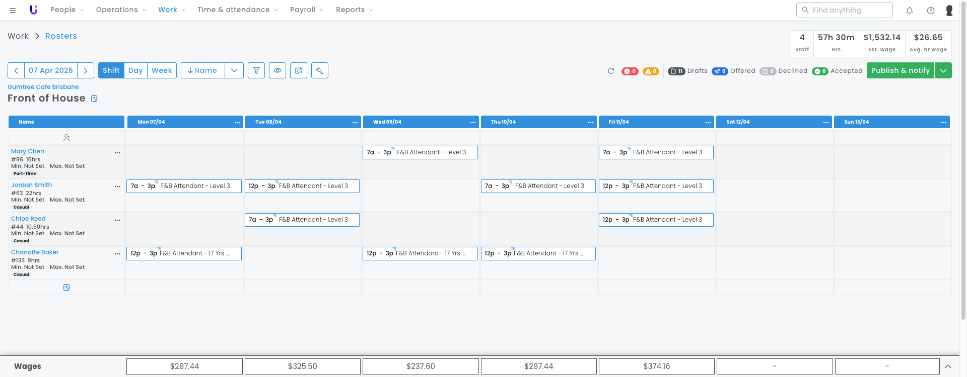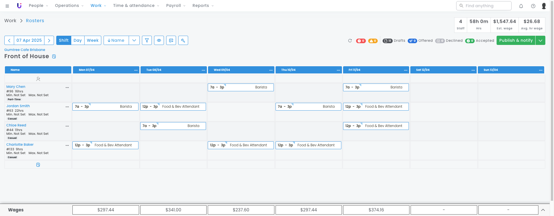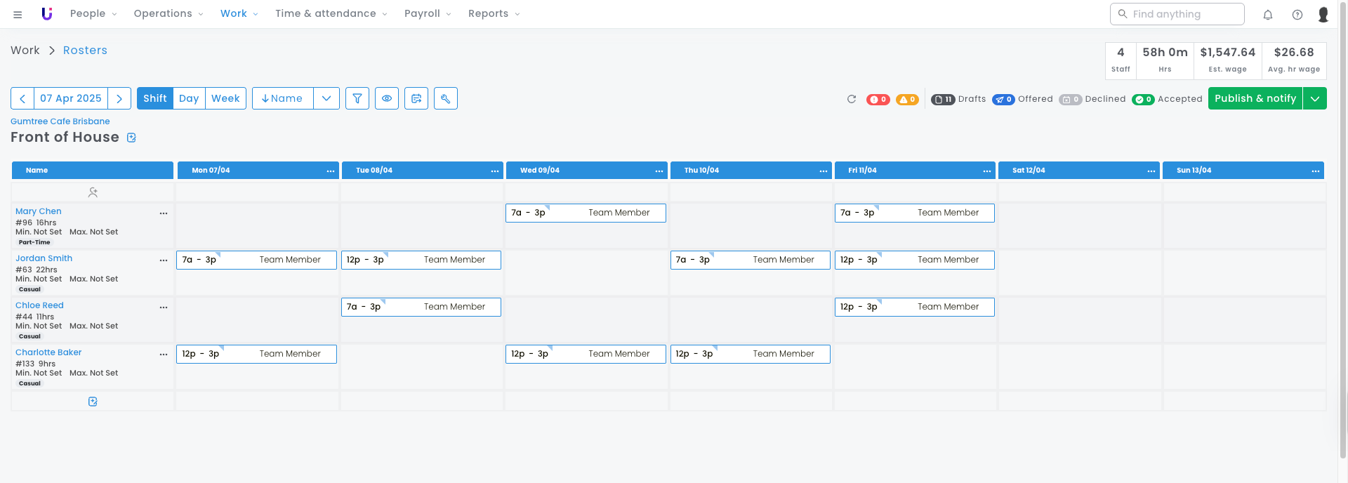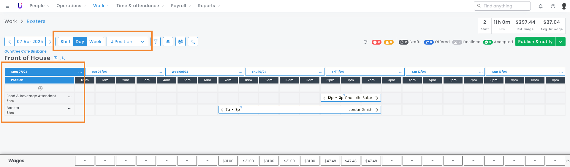 This means when you’re building a Waiter shift on the roster, as Level 2 is the most common position for your employees, you’re looking at a large pool of employees to choose from.