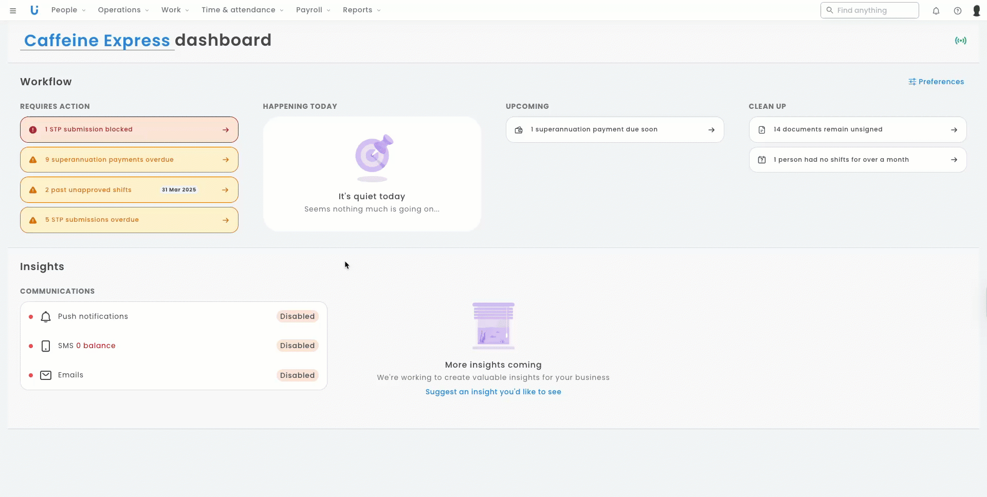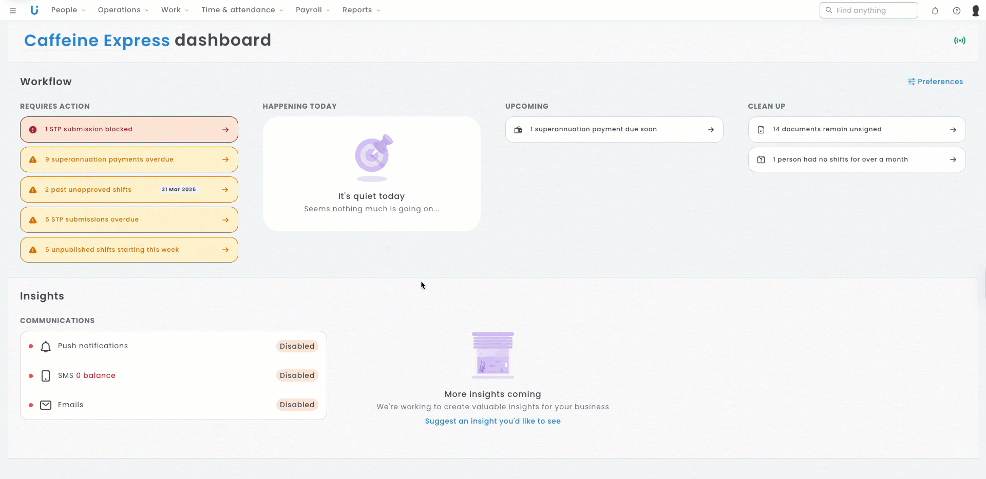 - Current or upcoming shifts on your rosters (either draft or published)
