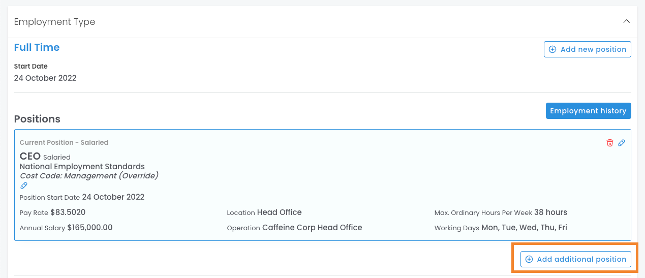 - For additional positions for permanent employees, select Add additional position.