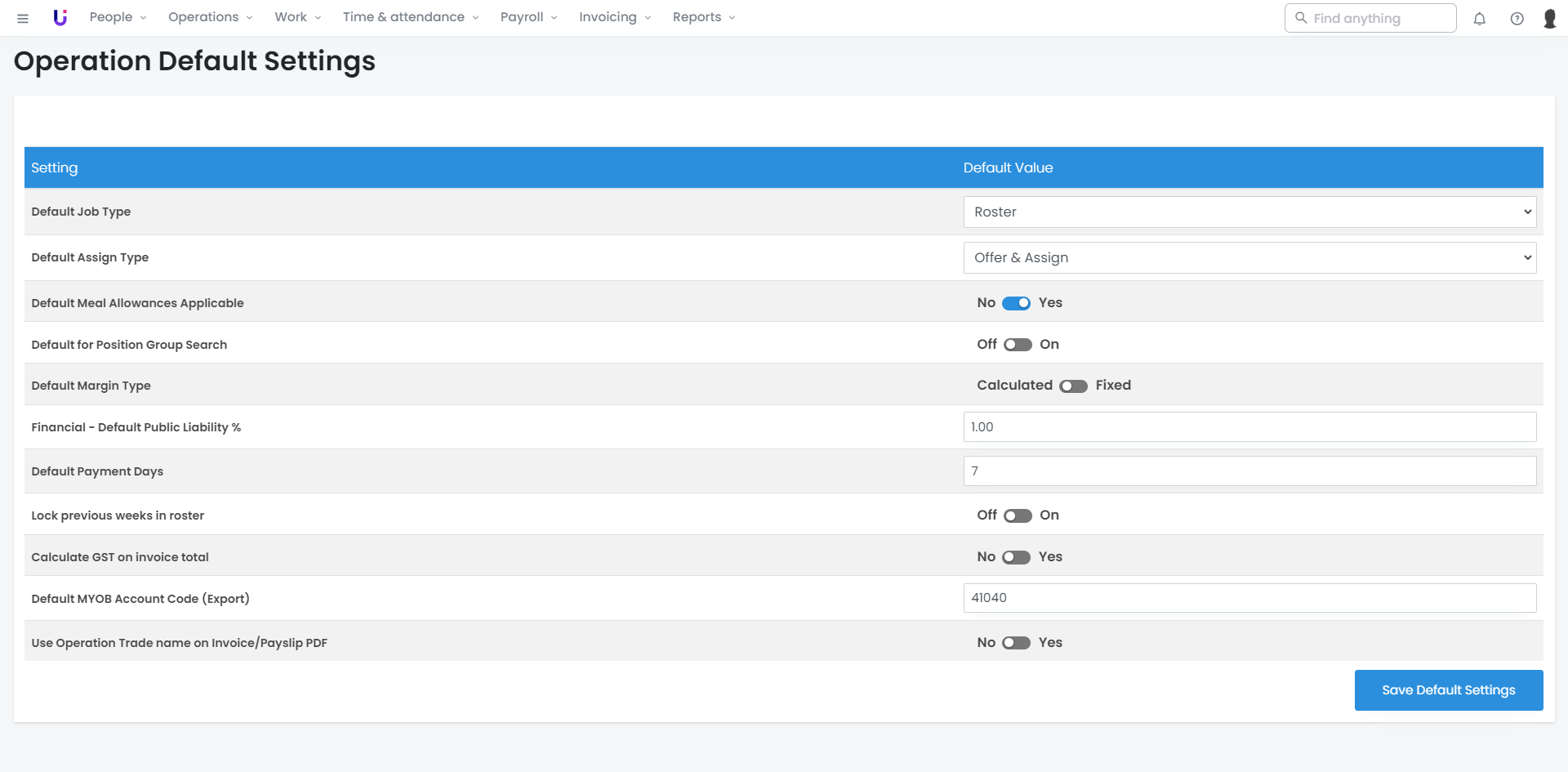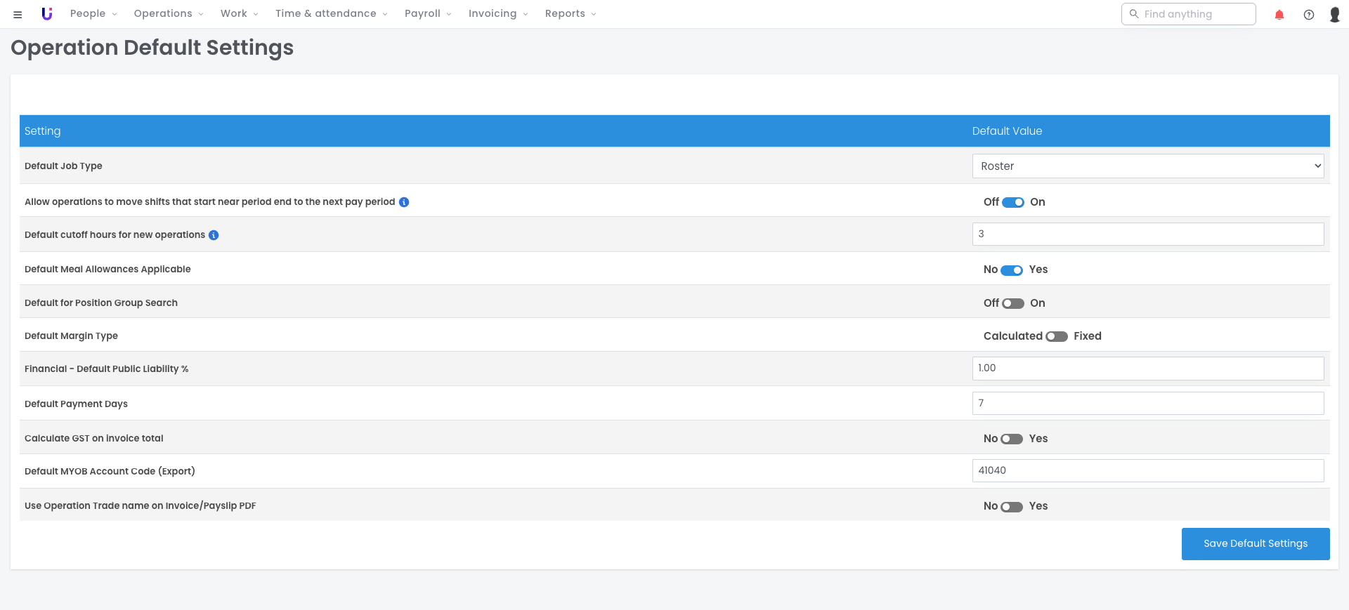 To save time when adding new Operations, you can apply Operation default settings instead of inputting them each time (they will default automatically) to your chosen settings, allowing for easy review.
