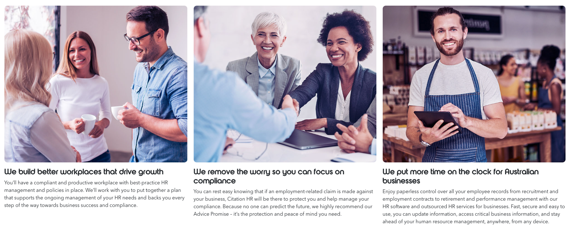 Workplace issues don’t wait for a convenient time, and that’s where Citation HR comes in. Their workplace relations experts provide tailored HR consulting services designed to suit your business, industry, and unique situation.
