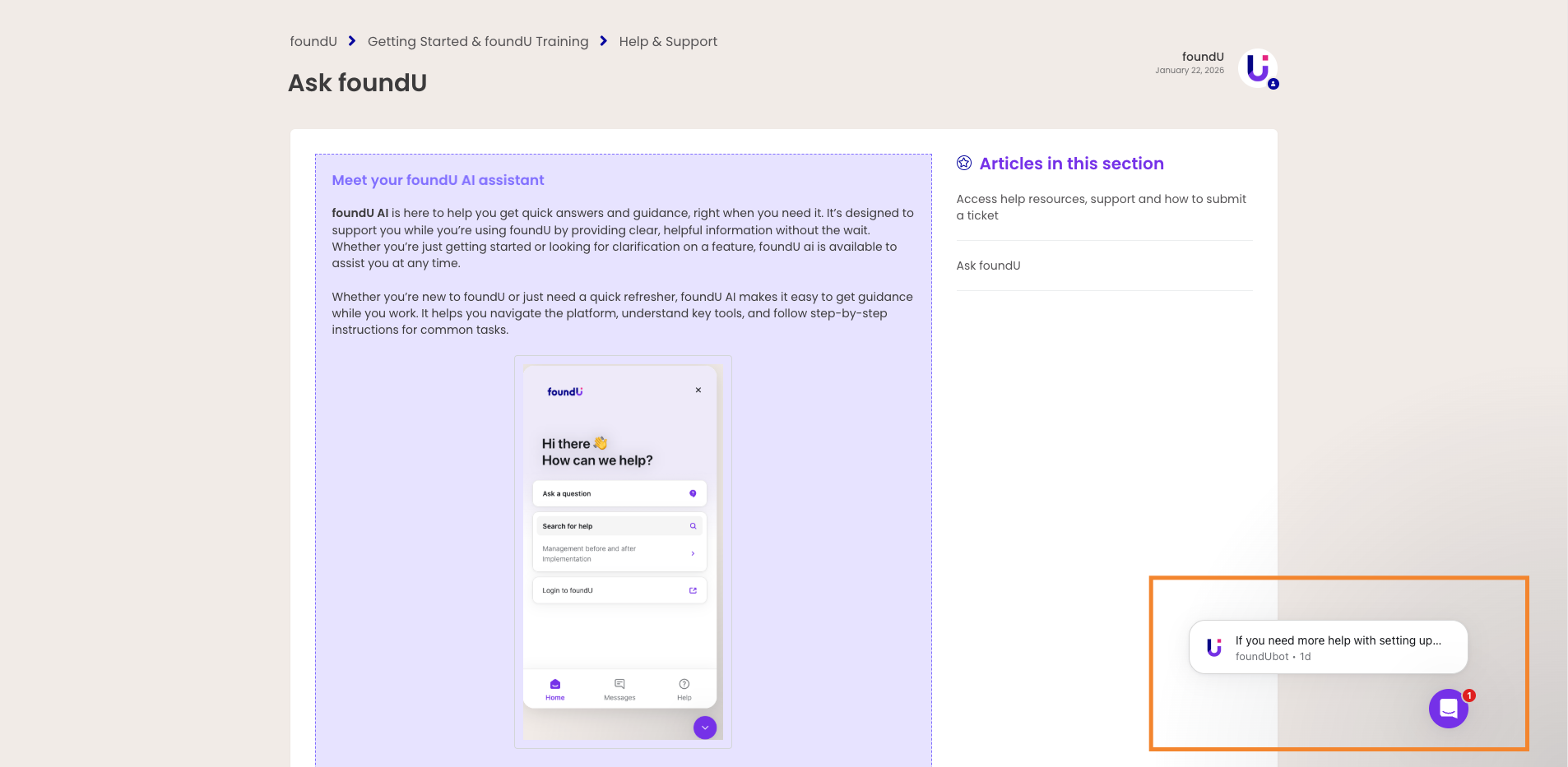To use the chat, simply type your question, and foundU AI will do all the hard work by searching both help centres to provide you with a tailored response.