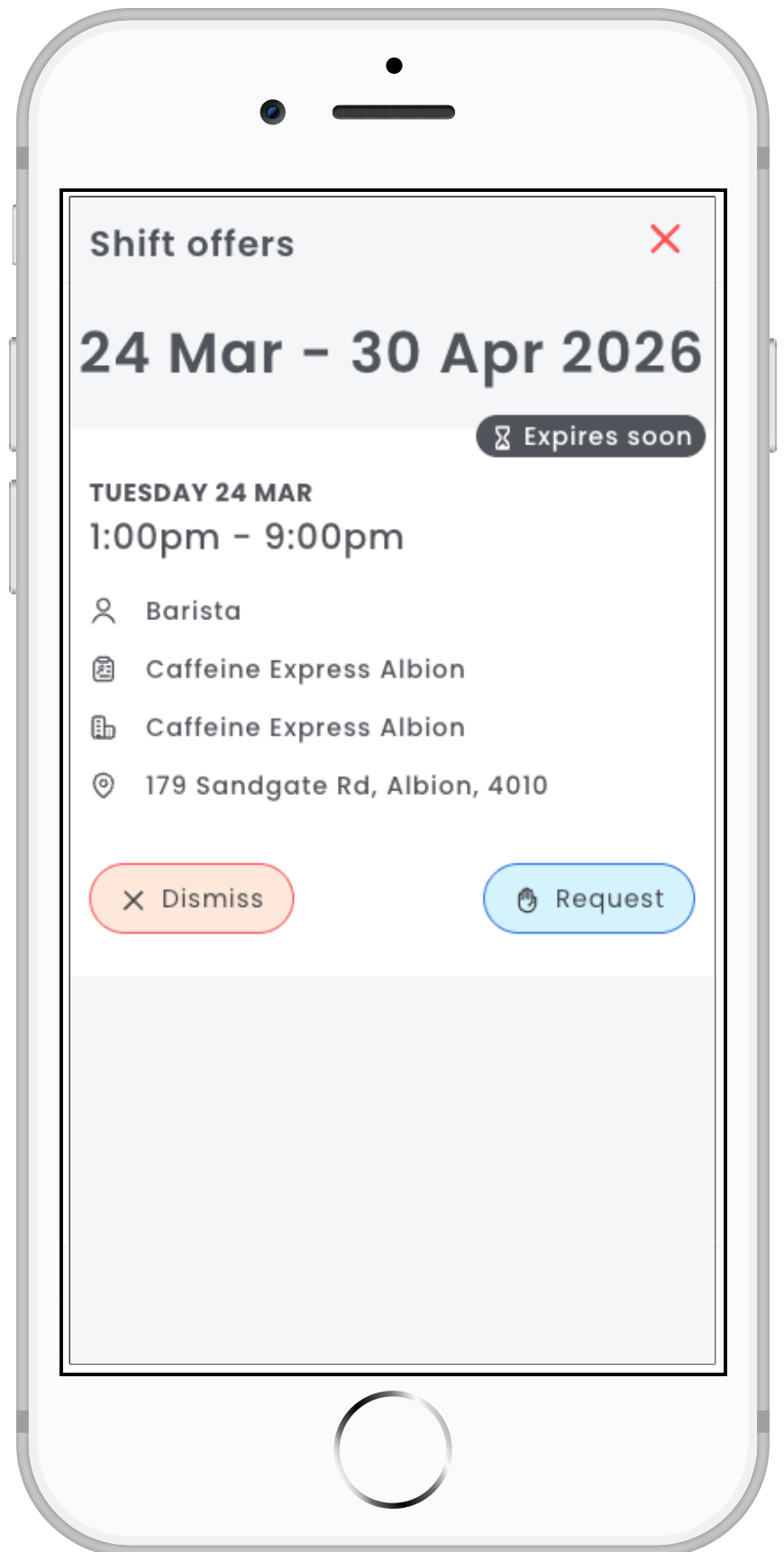 - The offer or open shift has expired