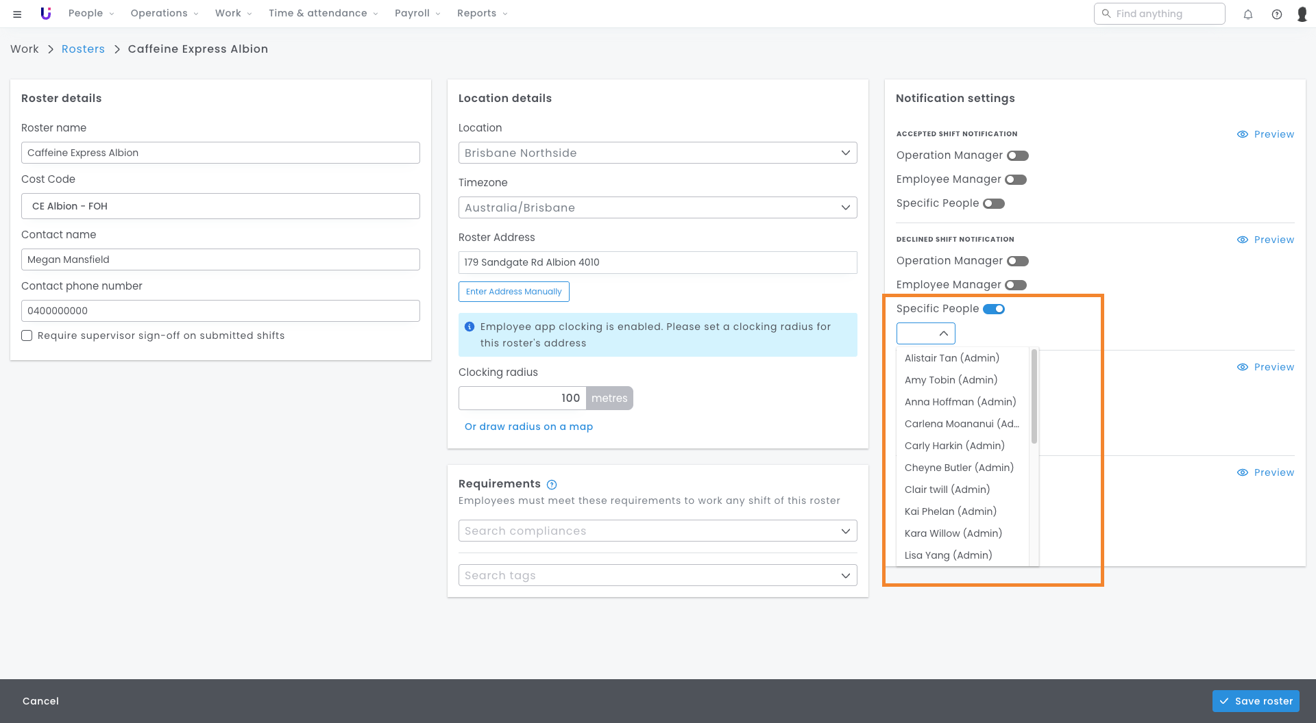 - See which employees are already rostered when sending shifts