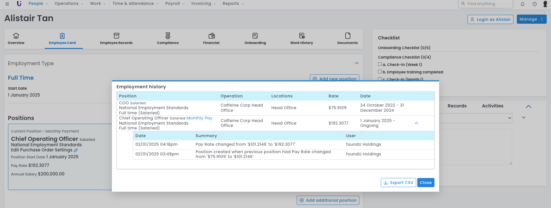 - The Employment History feature lets you track all position changes and updates made to an employee's position, enabling you to review past updates easily from the Employee Card.