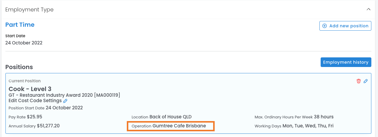 - Direct Employment customers - Operations can be a venue or branch of your business.