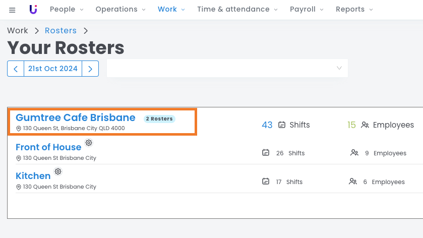 As shown in the image above, the Gumtree Cafe Brisbane operation has separate rosters for Front of House and Kitchen.