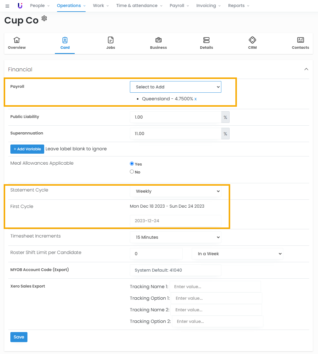 Statement Cycle - This will determine the period length of your payslips & invoices. Your choices are: