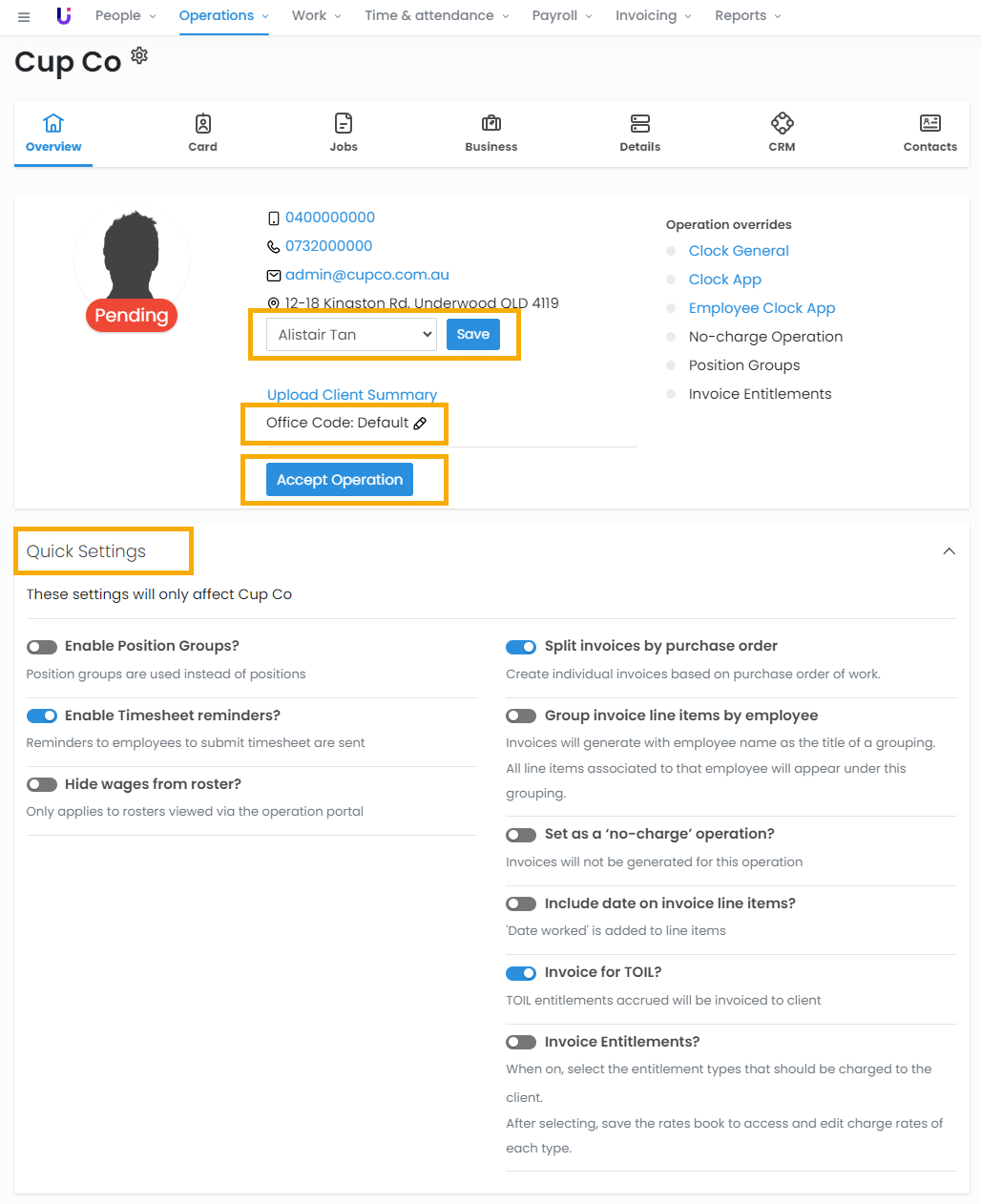 - Labour Hire customers - Each operation can be a separate client you invoice.