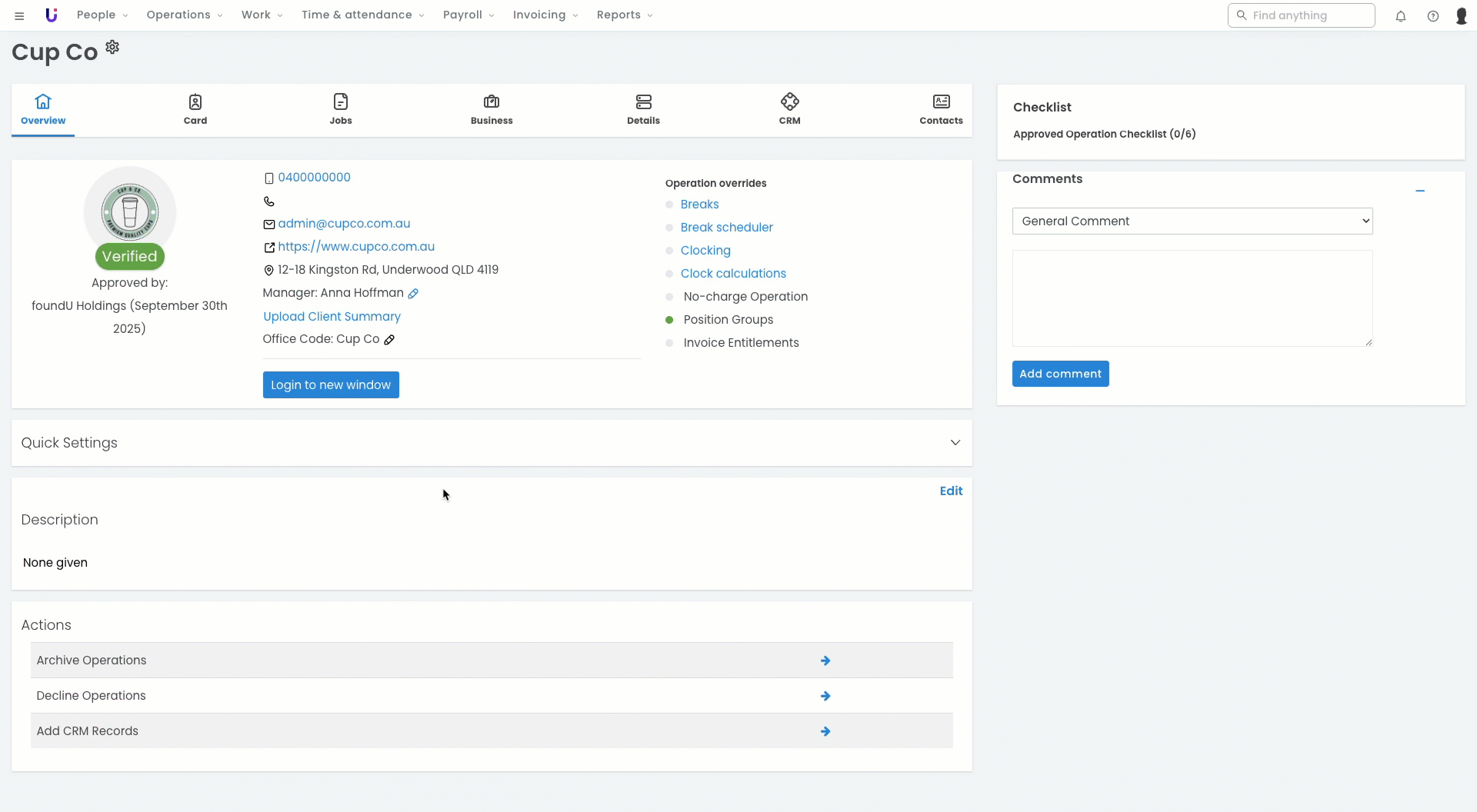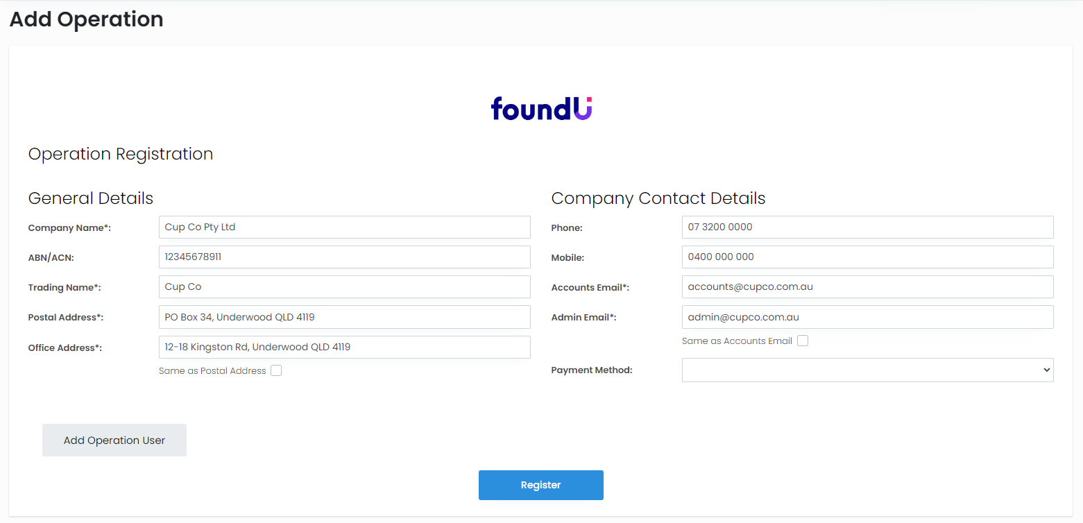 Depending on your business and how you use foundU, you may need to regularly add operations to your platform. This will need to be done before rostering and payroll.