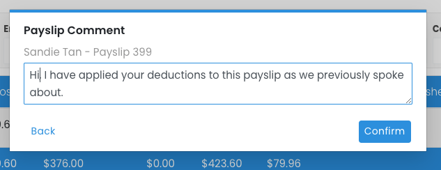 - Adding a comment to a single employee's payslip