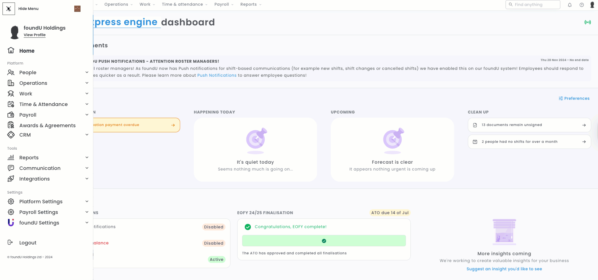 One of foundU's most beneficial HR features is the Document Library. This feature allows you to create and store personalised document templates, which can be issued to employees for signing and stored against their profiles.