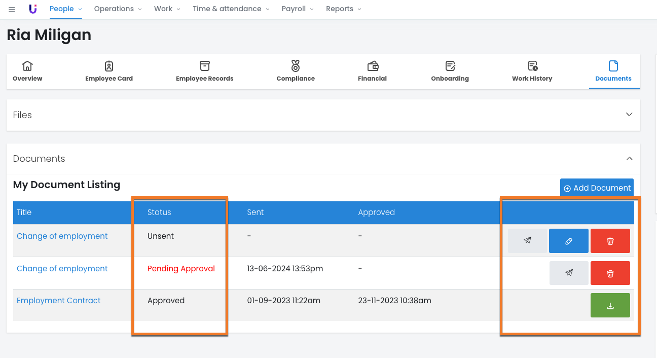 - It is not included as part of the employee 5-step onboarding journey; however, documents can be issued to both Pending and Approved People.