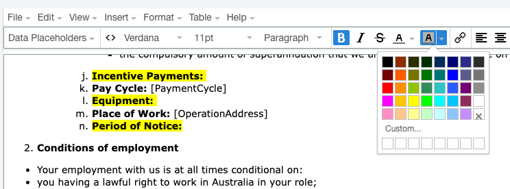 In such cases, you can highlight the text in a bright colour to make it stand out. This will allow you to quickly edit the document when sending it individually to an employee.