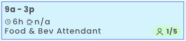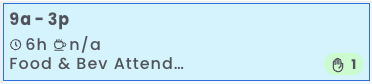 Shortlist shifts will display as the quick fill offer does; however, it will also display a raised hand icon. Once employees begin requesting the shift, the hand will highlight in green and display the number of requests.