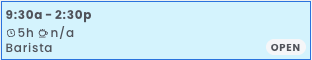 Open shift - This shift has been created from the rostering page, allowing employees to express interest in working the shift. As these shifts are similar to offers, these tiles appear on the roster in the same blue.