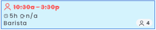 Declined - The employee has declined the offered shift. You can identify declined shift offers on your roster by their blue tile; the shift hours will be highlighted in red and struck through.