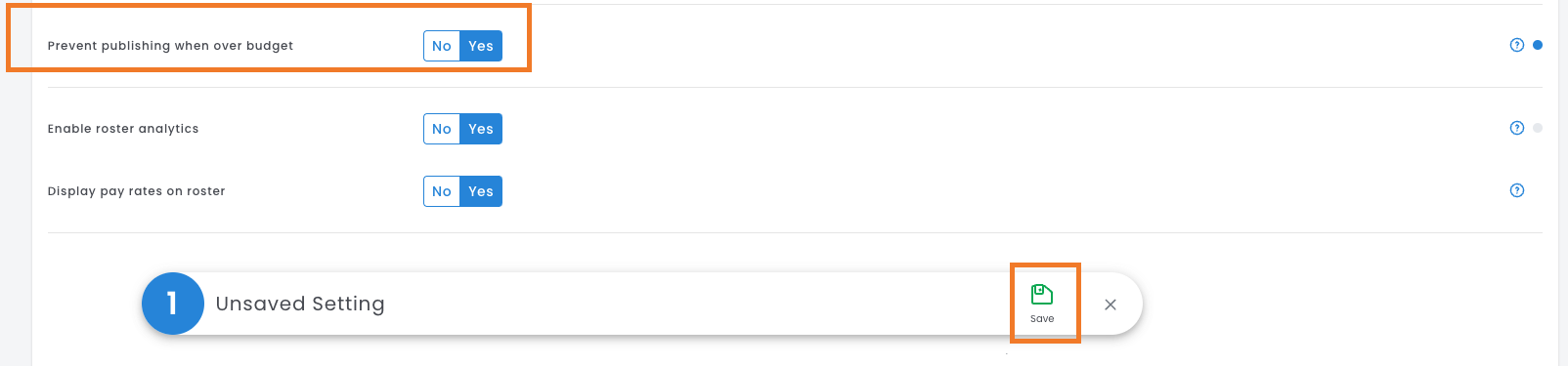 Great news! Updating your platform settings can prevent all managers from publishing over-budget rosters. Since this is a platform setting, it will apply to all published rosters.