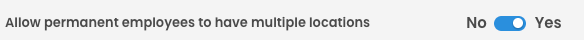 This setting is turned on by default. If you prefer your permanent employees to work at only one location, you can turn this off — keep in mind that this change will affect your entire platform.