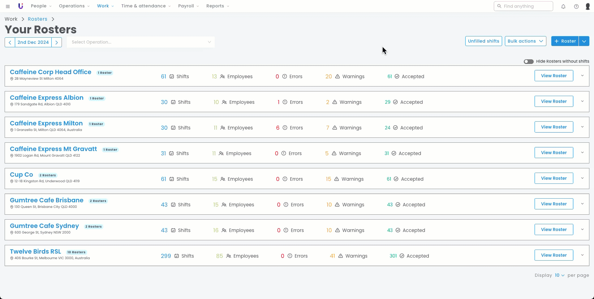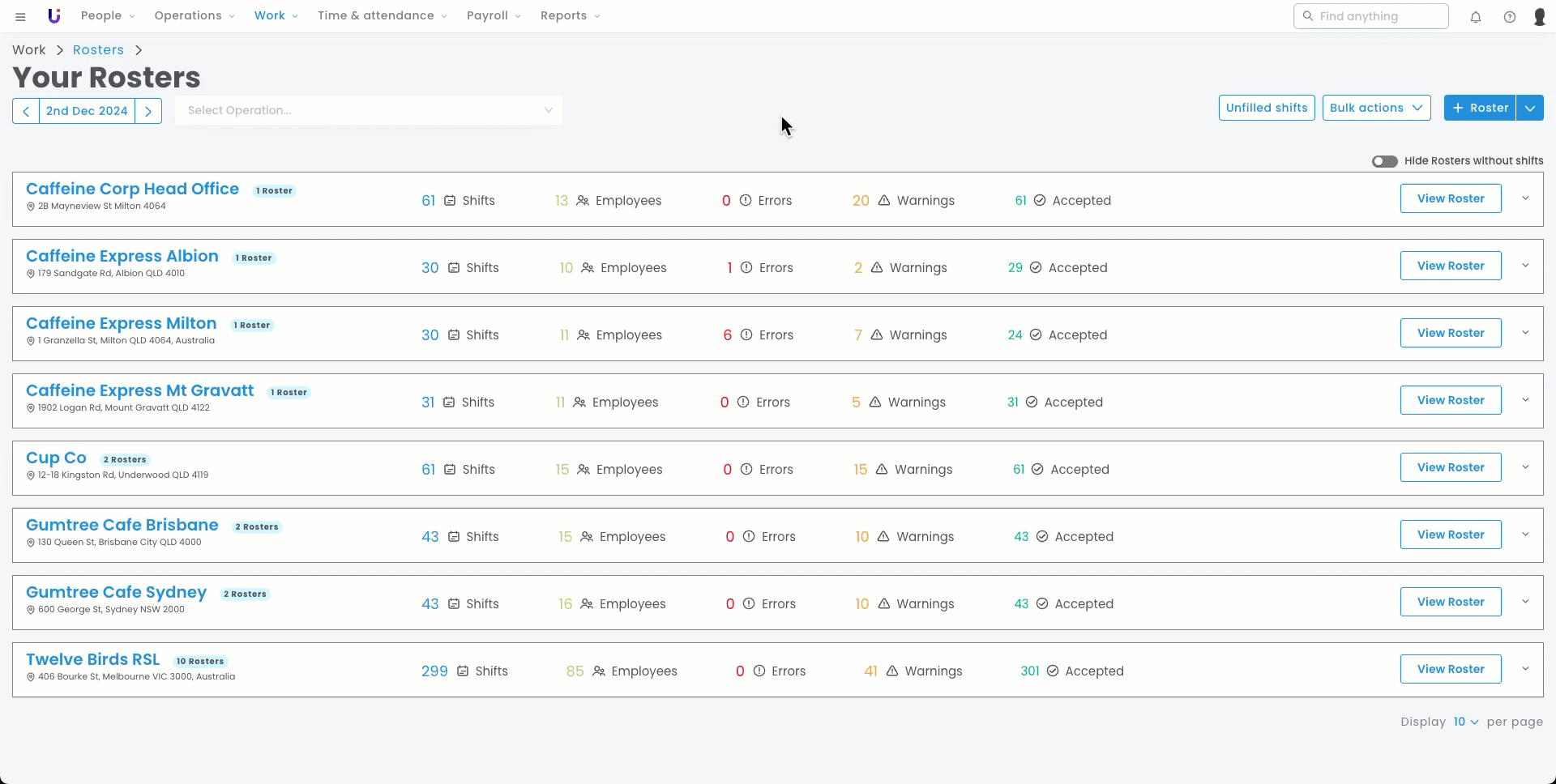 - Navigate to Work > Rosters.