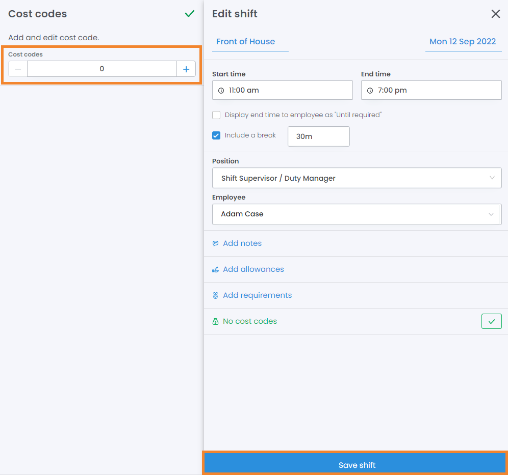 - Cost an individual shift (or part of a shift). Using shift costing, a specific shift can be costed separately to the roster. Multiple Cost Codes can be applied to a single shift, too.