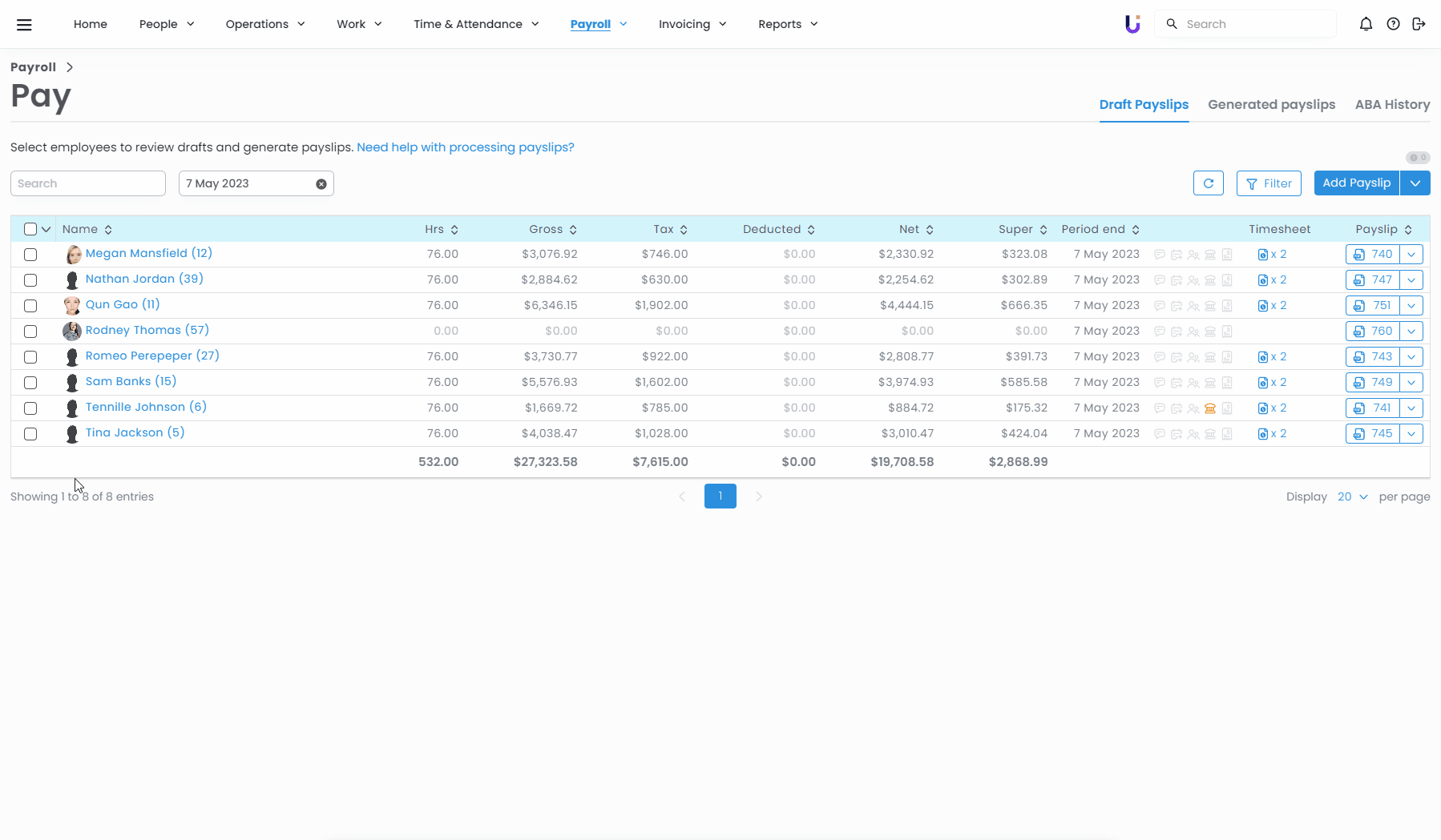 - Draft payslips - For pre-payroll checking.