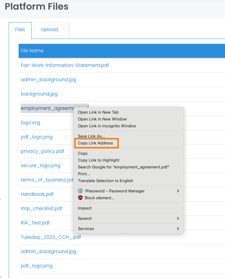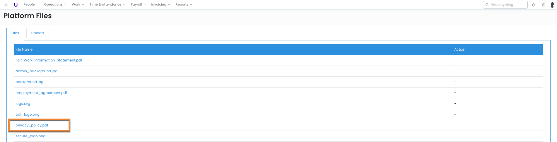 If you're uploading a Platform file that you would like as part of your Onboarding process for your employees to read and accept, you'll need to reach out to our Support team after uploading your new platform file so that we can replace the item in your onboarding journey. View the steps for this process here.