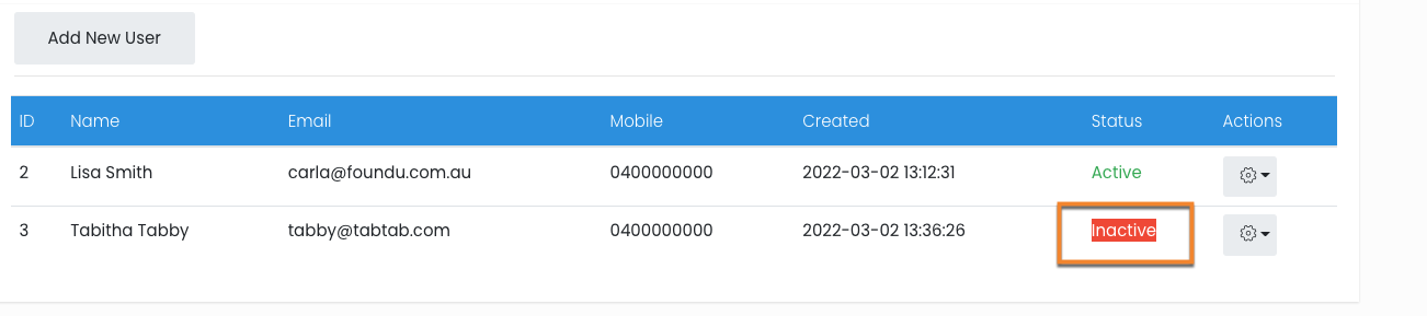 - Select the cog icon on the right next to the users details to Edit.