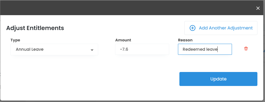- Making an adjustment to leave entitlements