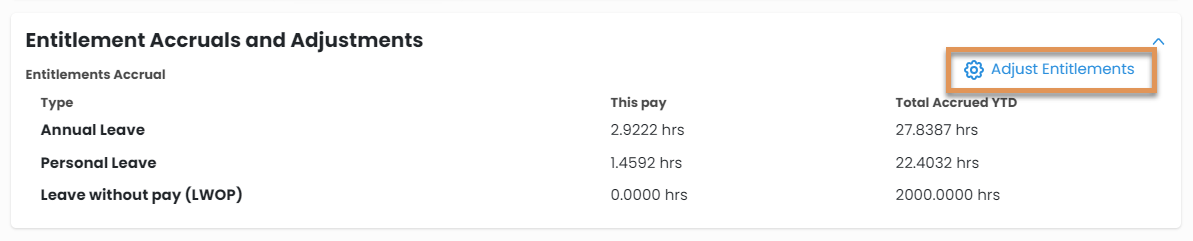 Adjust entitlement accruals and TOIL balances on your employee payslips