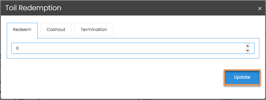 Enter the number of hours you are wanting to redeem on the payslip and select Update. You also have the option to Cashout all available hours or pay them out during a Termination.