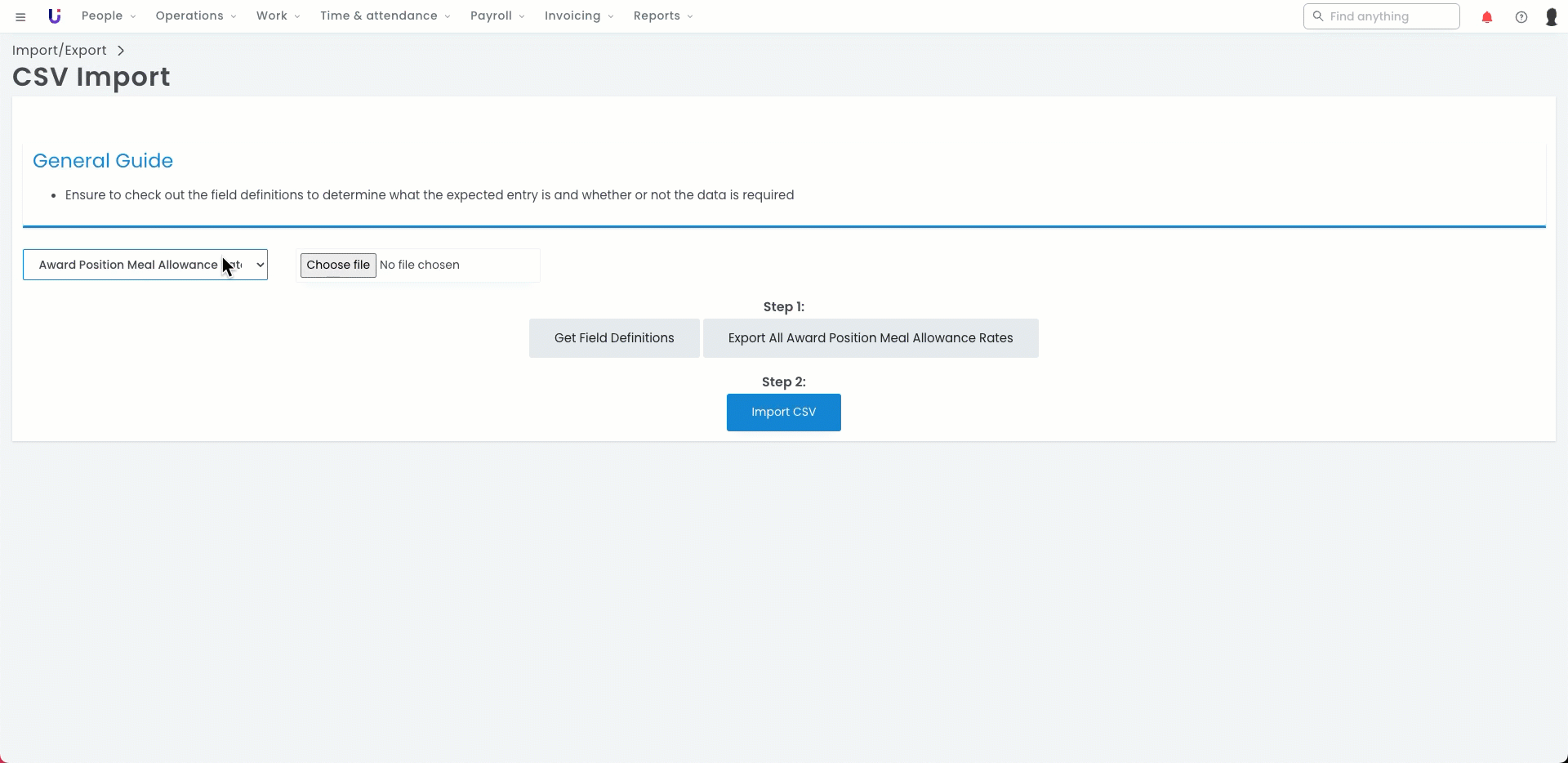As these allowances are set within your Award's pay rules for each position. Managing them one by one could become tedious, using our CSV Import, you can manage your meal allowance rates quickly and in bulk.