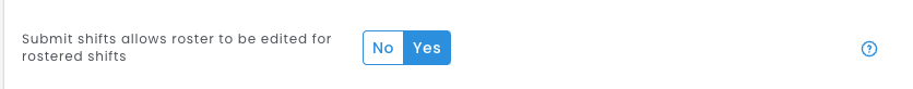 - Within the Submit Shifts section, locate the setting 'Submit shifts allows roster to be edited for rostered shifts'.