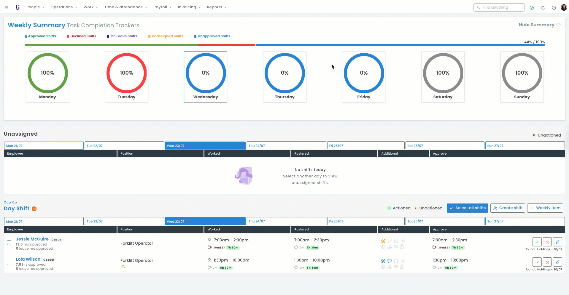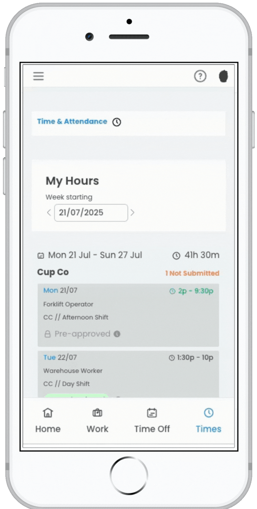 - The supervisor or manager is provided with a summary to review of the shift times, break times, position, and roster the employee has submitted.