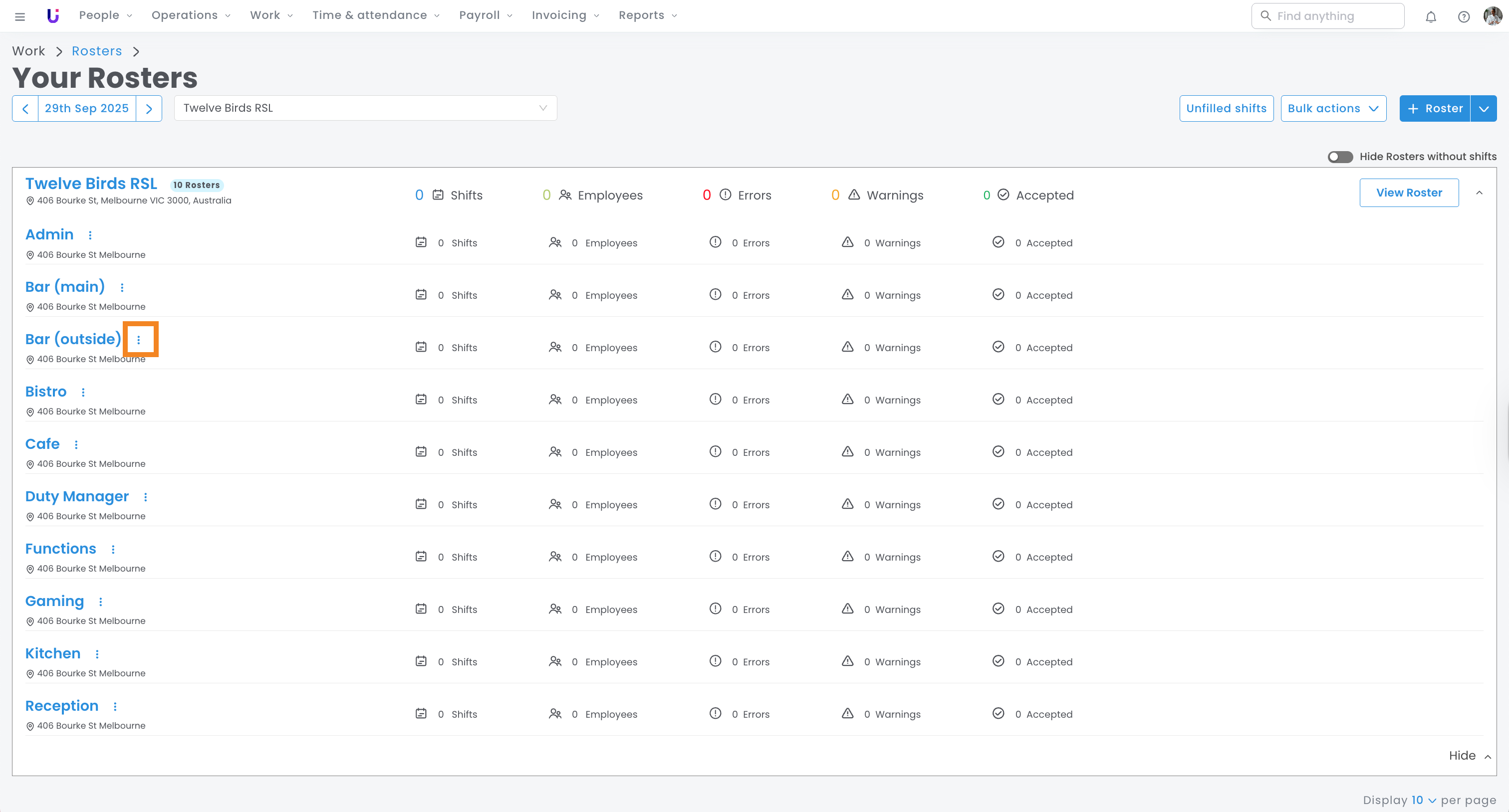 - Employees can only view and select the roster for their assigned location/s. Locations are a way of limiting which rosters employees can work. You'll be able to read more about locations here.