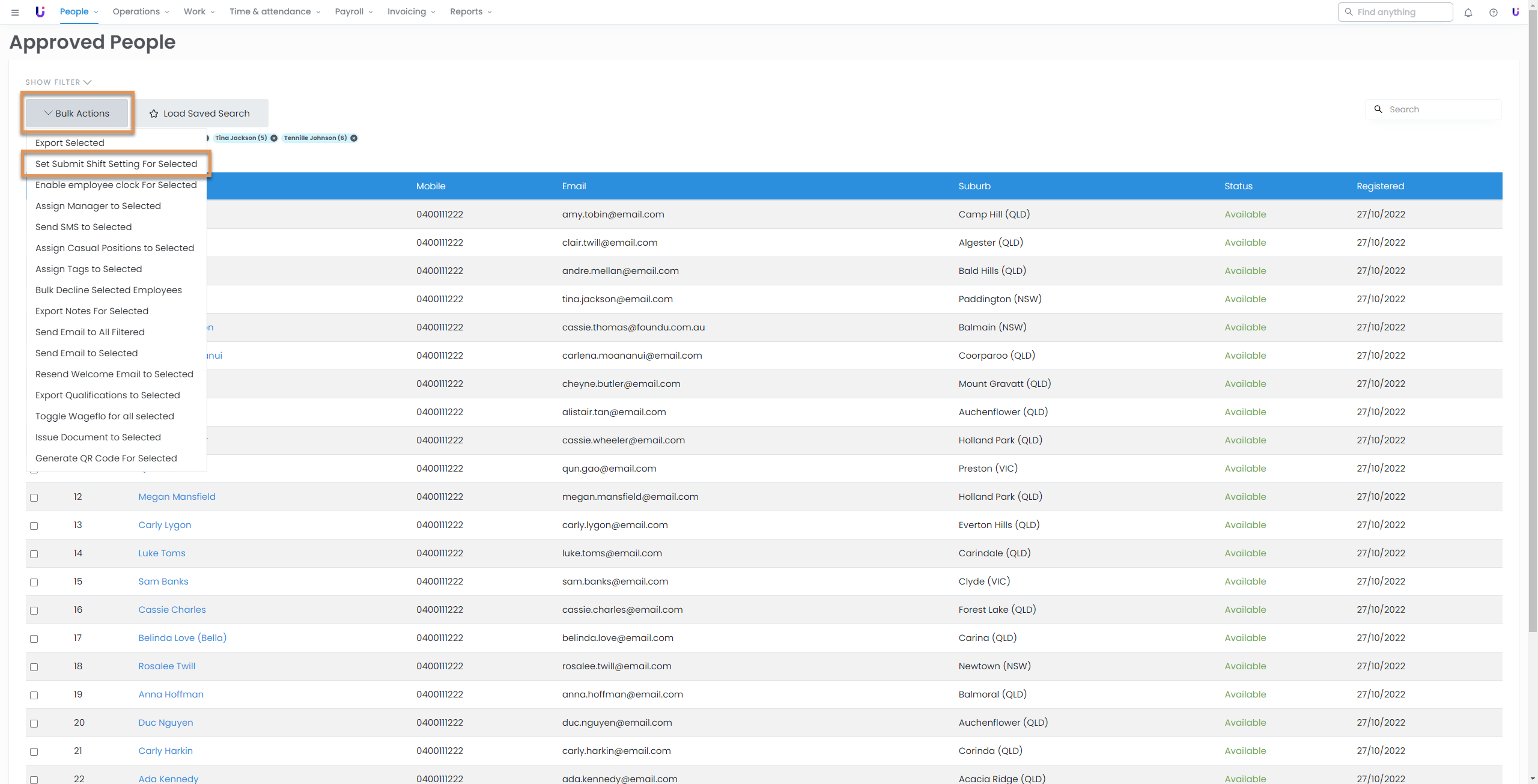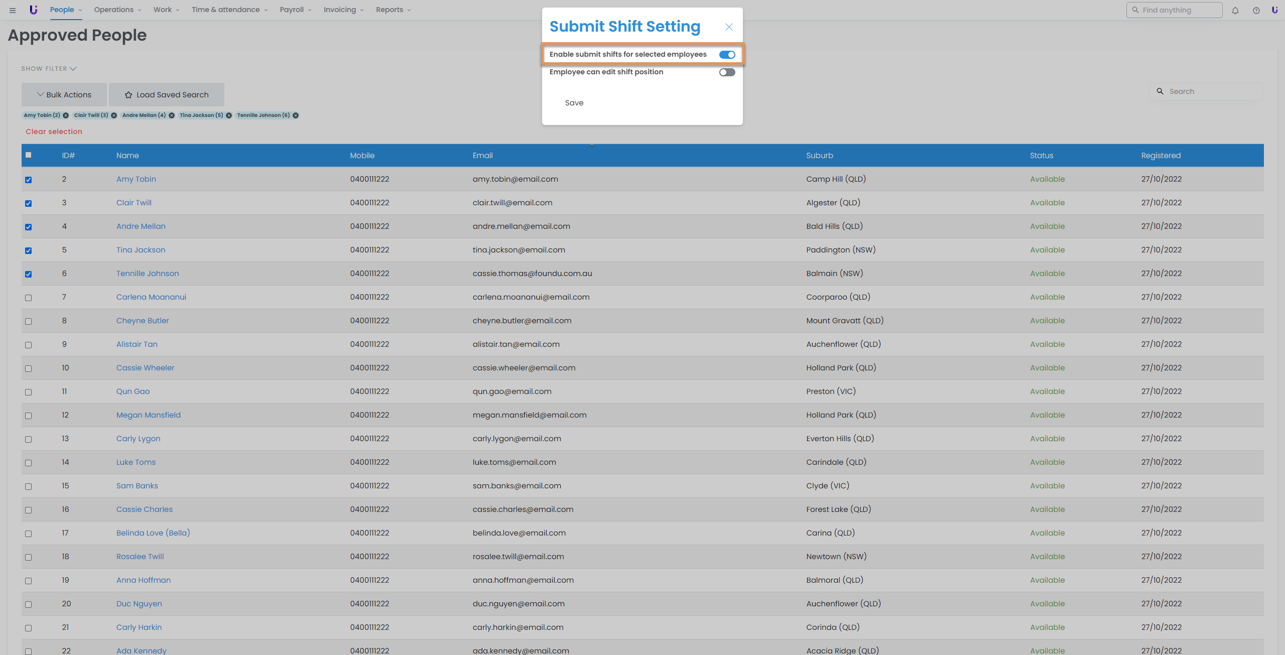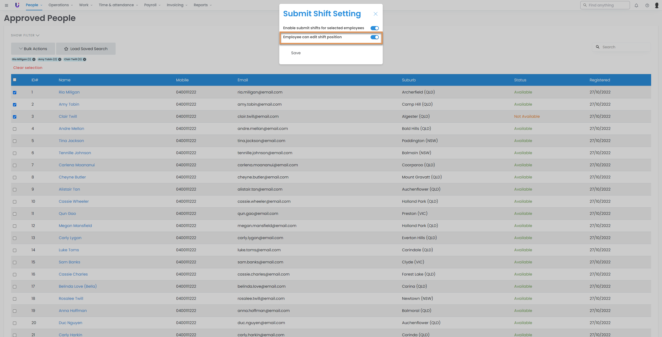 - Navigate to People > Approved people and select the desired employees.