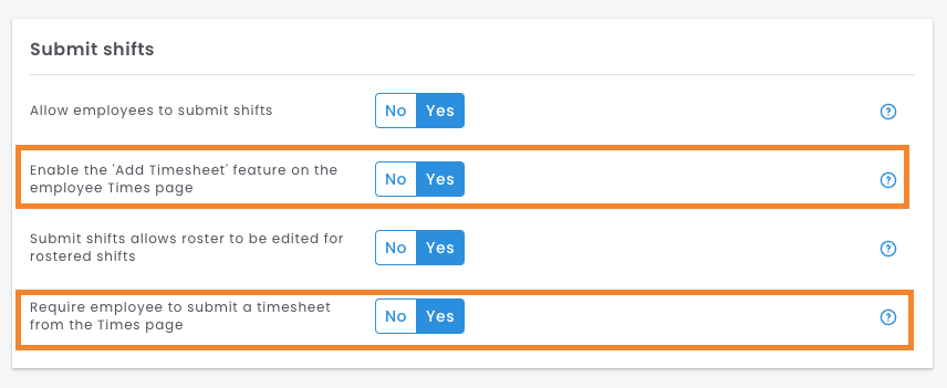 If you would like to see other options for tailoring your Submit Shifts settings, then please see our full article on Time & Attendance settings!