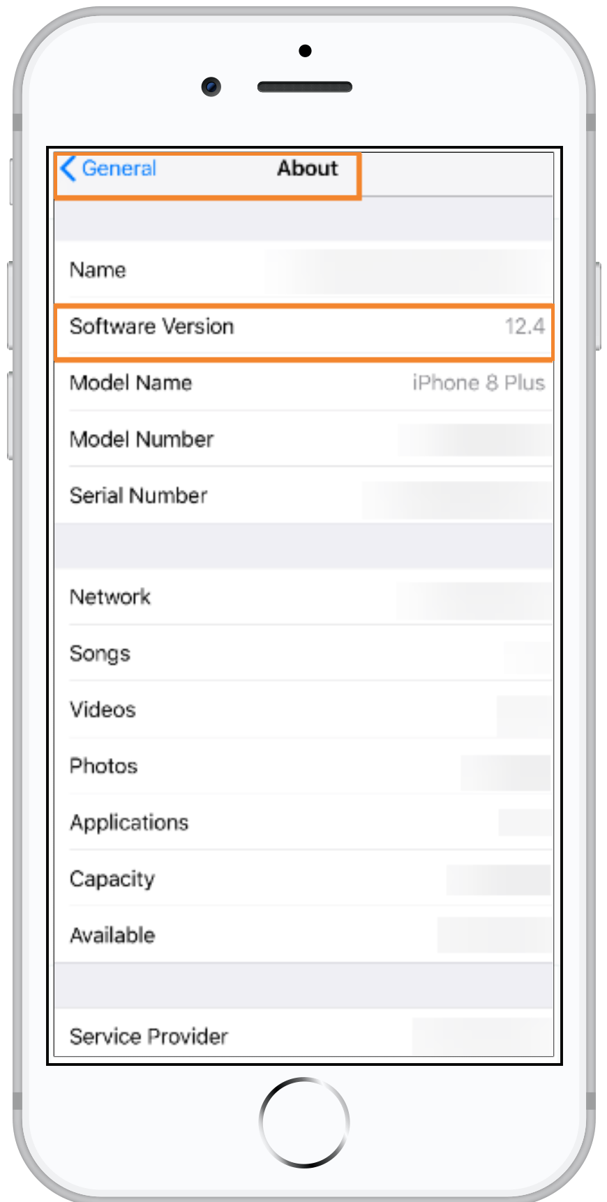 - On your device, navigate to Settings > General >About.