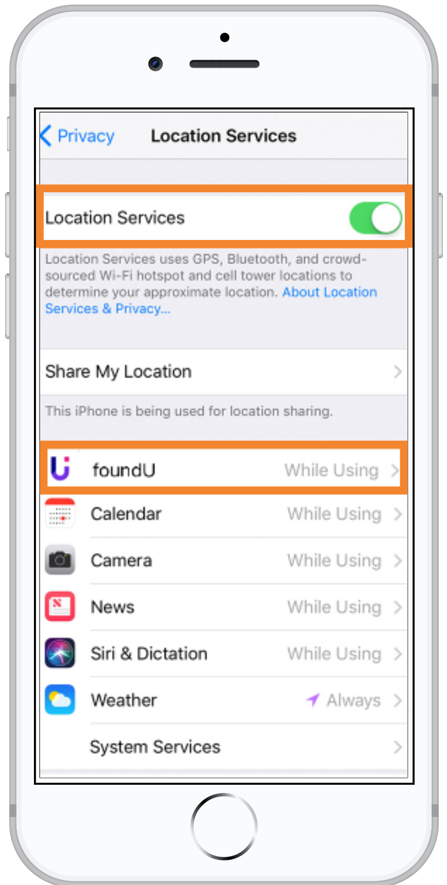 - Make sure that Location Services is on.