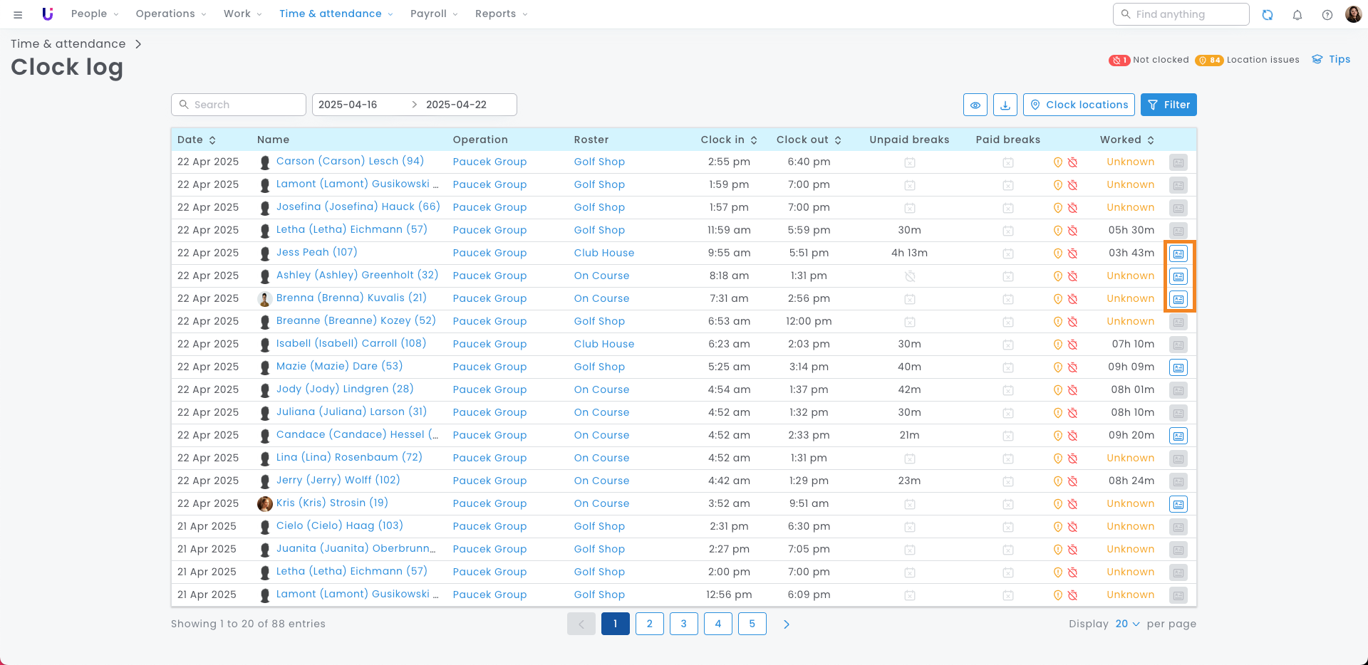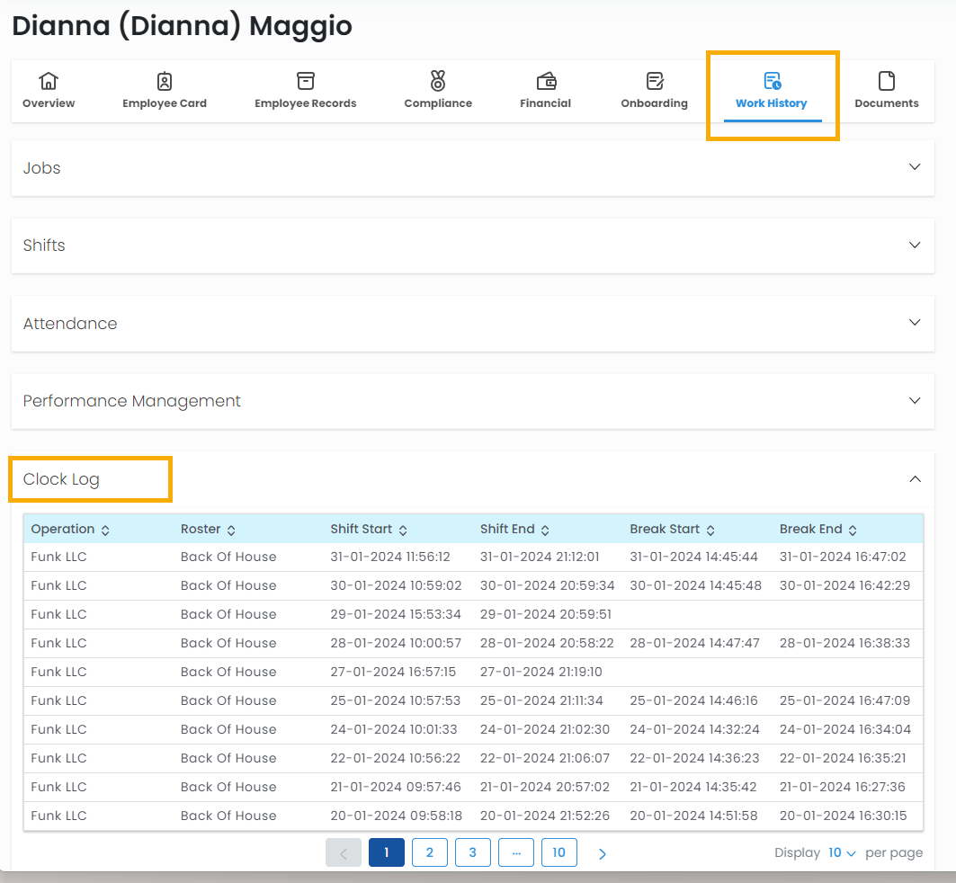 - Here you can see a log of every time this employee has clocked including: