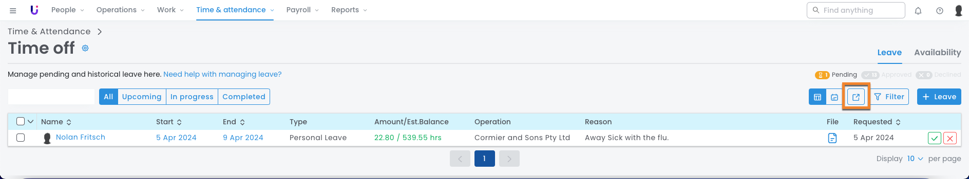 View your employees' upcoming, pending, and approved leave in your external online calendar