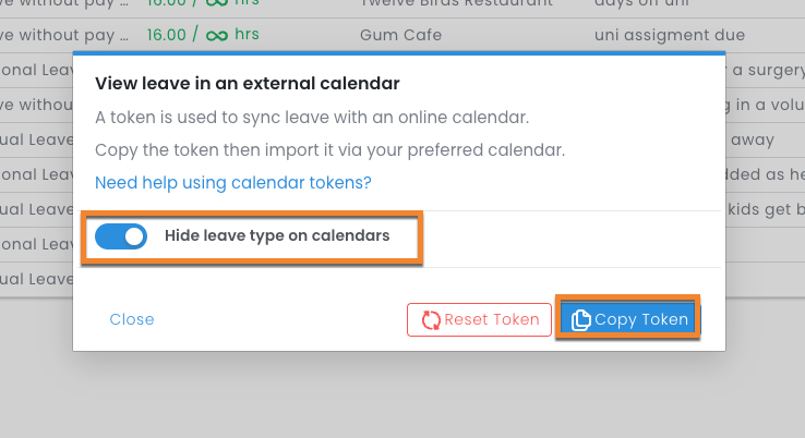 Hot tip: In the case of one manager needing oversight over another manager's reports, consider setting up a separate new calendar link instead of resetting the current token. This allows them to see separate leave calendars for different teams side-by-side.