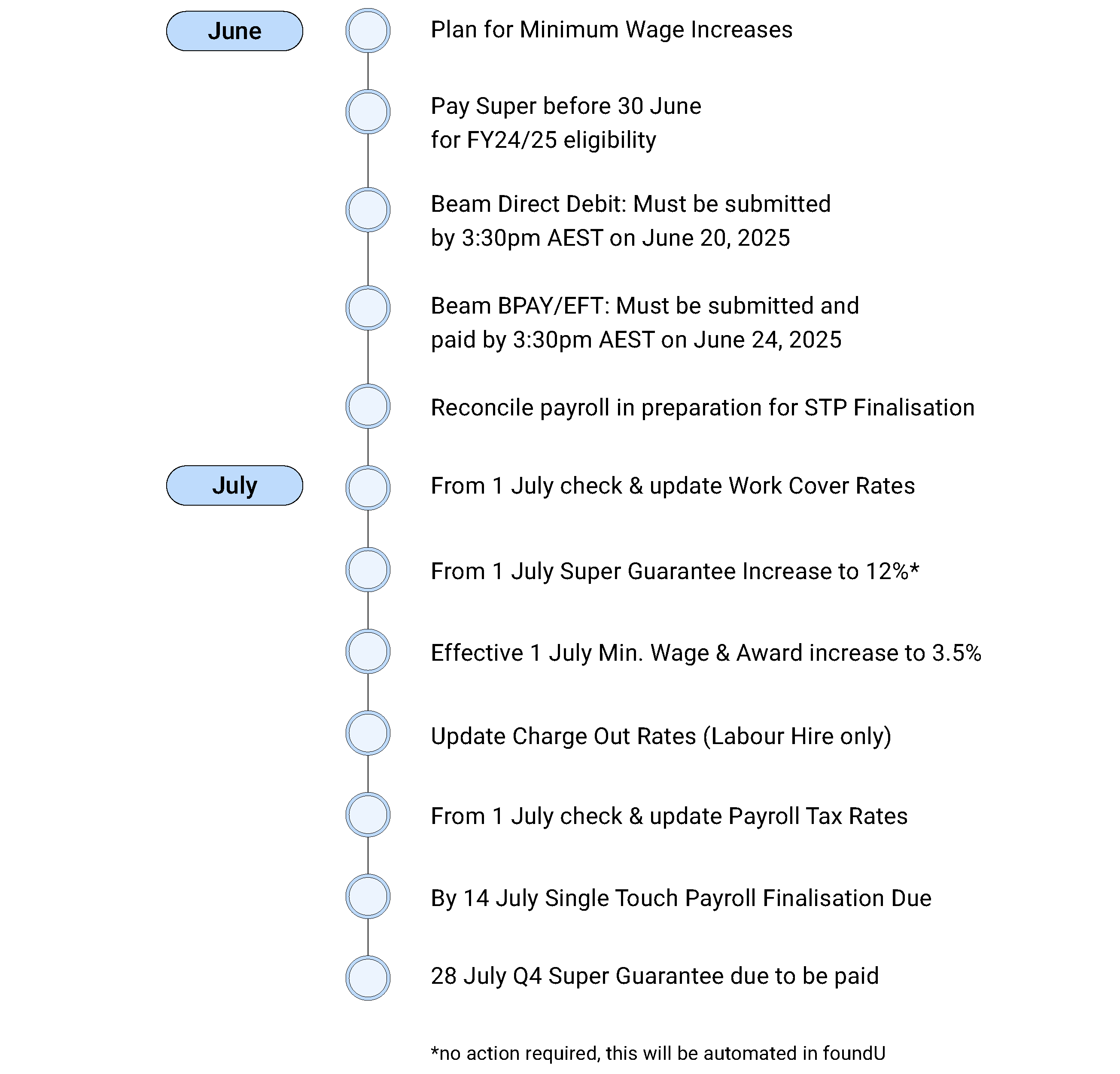 Please note: These dates ensure that there is enough time for the bank to process the transaction and for the payments to be received by the relevant super funds before July 1.