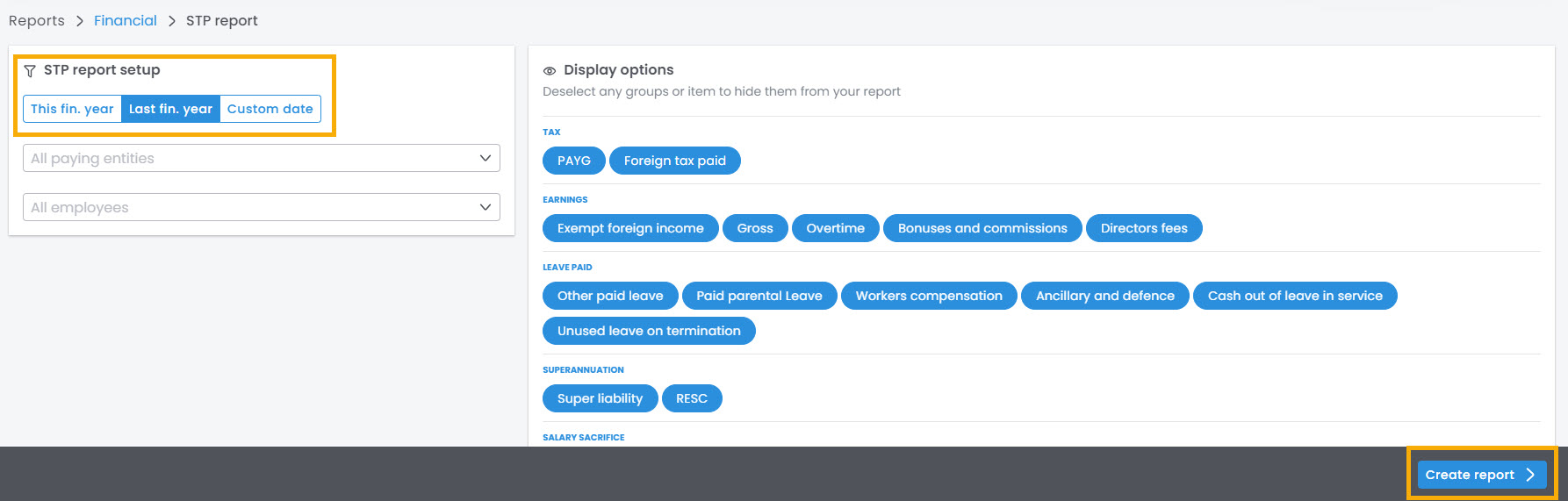 - Select 'Last Financial Year' as your timeframe (assuming you are running this report after June 30).