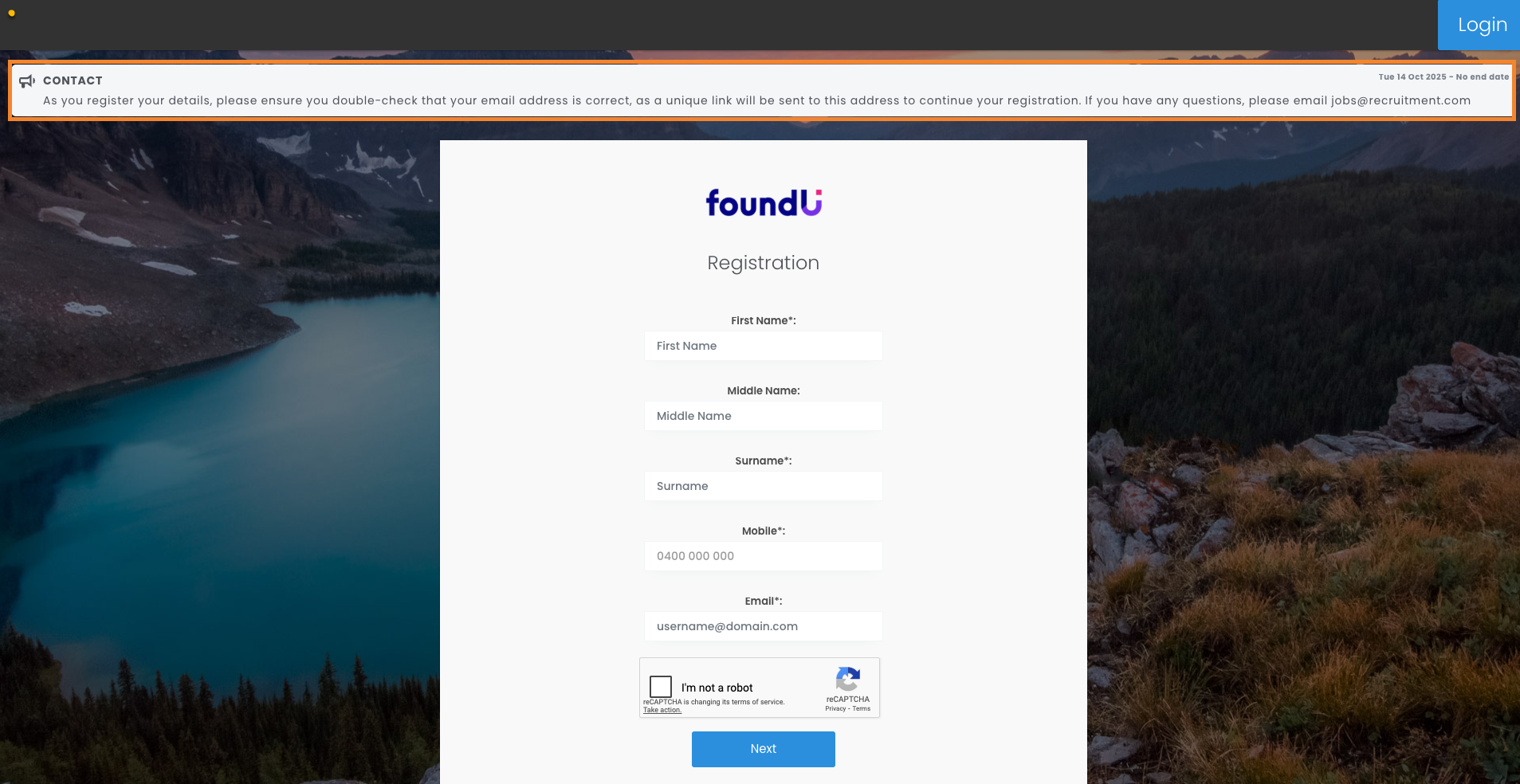 When a candidate clicks the registration link from your job ad, they will be directed to the registration page to complete their details.