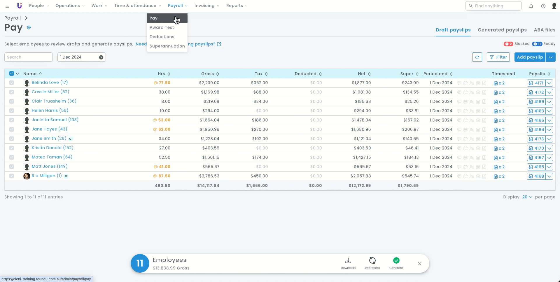 - Invoices can be generated and issued to your clients for Contractor work that has been rostered and approved with a Paid position. As invoices are generated off of Draft payslips, no work completed by those with a No Pay position can be invoiced.
